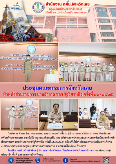 ประชุมคณะกรมการจังหวัดเลย หัวหน้าส่วนราชการ นายอำเภอ ฯลฯ รัฐวิสาหกิจ ครั้งที่ ๑๒/๒๕๖๕