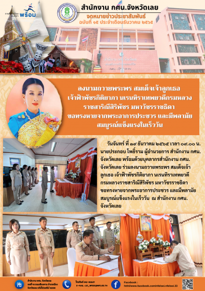 ลงนามถวายพระพร สมเด็จเจ้าลูกเธอ เจ้าฟ้าพัชรกิติยาภา นเรนทิราเทพยวดีกรมหลวงราชสาริณีสิริพัชร มหาวัชรราชธิดา ขอทรงหายจากพระอาการประชวร และมีพลามัยสมบูรณ์แข็งแรงในเร็ววัน