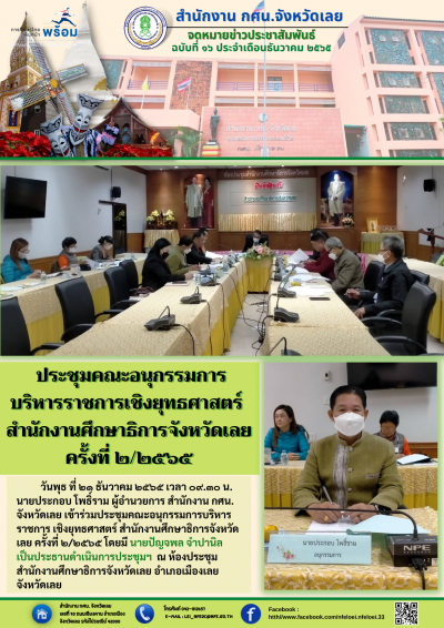 ประชุมคณะอนุกรรมการ บริหารราชการเชิงยุทธศาสตร์ สำนักงานศึกษาธิการจังหวัดเลย ครั้งที่ ๒/๒๕๖๕