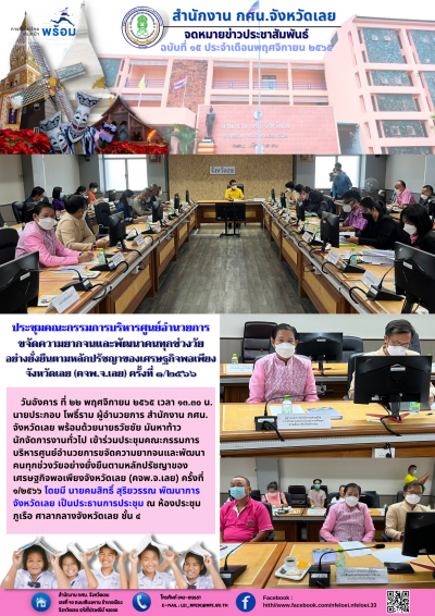 ประชุมคณะกรรมการบริหารศูนย์อำนวยการขจัดความยากจนและพัฒนาคนทุกช่วงวัย อย่างยั่งยืนตามหลักปรัชญาของเศรษฐกิจพอเพียงจังหวัดเลย (คจพ.จ.เลย) ครั้งที่ ๑/๒๕๖๖
