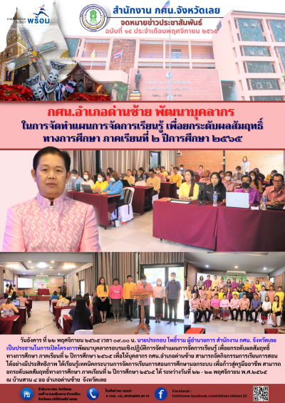 กศน.อำเภอด่านซ้าย พัฒนาบุคลากร ในการจัดทำแผนการจัดการเรียนรู้ เพื่อยกระดับผลสัมฤทธิ์ทางการศึกษา ภาคเรียนที่ ๒ ปีการศึกษา ๒๕๖๕
