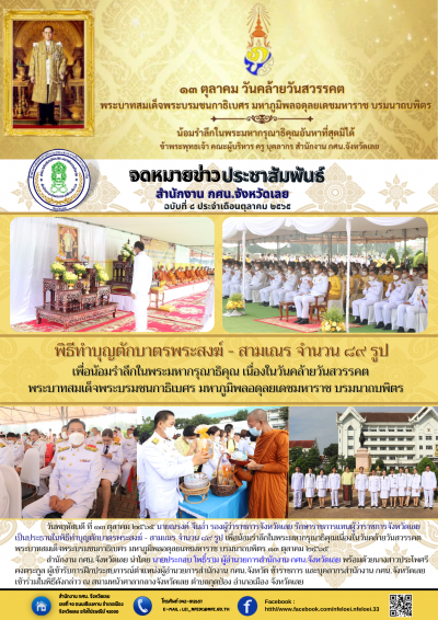 พิธีทำบุญตักบาตรพระสงฆ์ - สามเณร จำนวน ๘๙ รูป เพื่อน้อมรำลึกในพระมหากรุณาธิคุณเนื่องในวันคล้ายวันสวรรคต พระบาทสมเด็จพระบรมชนกาธิเบศร มหาภูมิพลอดุลยเดชมหาราช บรมนาถบพิตร ๑๓ ตุลาคม ๒๕๖๕