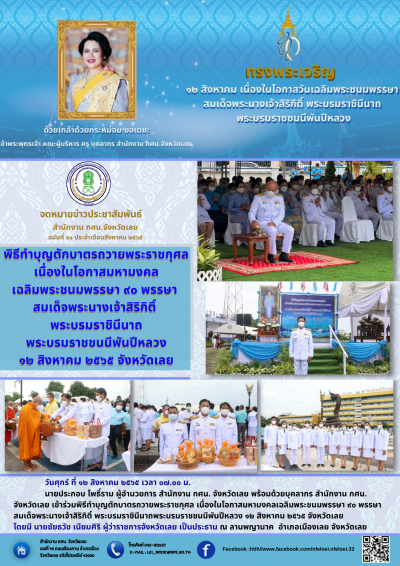 พิธีทำบุญตักบาตรถวายพระราชกุศล เนื่องในโอกาสมหามงคลเฉลิมพระชนมพรรษา ๙๐ พรรษา สมเด็จพระนางเจ้าสิริกิติ์ พระบรมราชินีนาถพระบรมราชชนนีพันปีหลวง ๑๒ สิงหาคม ๒๕๖๕ จังหวัดเลย