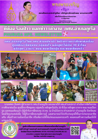 กศน.อำเภอภูเรือ โดย กศน.ตำบลท่าศาลา จัดกิจกรรมการศึกษาต่อเนื่อง ศูนย์ฝึกอาชีพชุมชน กลุ่มสนใจ หลักสูตรไม่เกิน 30 ชั่วโมง หลักสูตร อาหาร-ขนม ขนมเบื้องญวณ