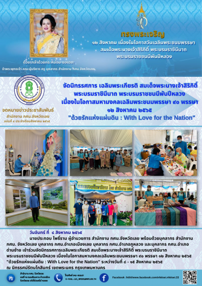 จัดนิทรรศการเฉลิมพระเกียรติ สมเด็จพระนางเจ้าสิริกิติ์ พระบรมราชินีนาถ พระบรมราชชนนีพันปีหลวง เนื่องในโอกาสมหามงคลเฉลิมพระชนมพรรษา ๙๐ พรรษา ๑๒ สิงหาคม ๒๕๖๕ "ด้วยรักแห่งแผ่นดิน : With Love for the Nation"