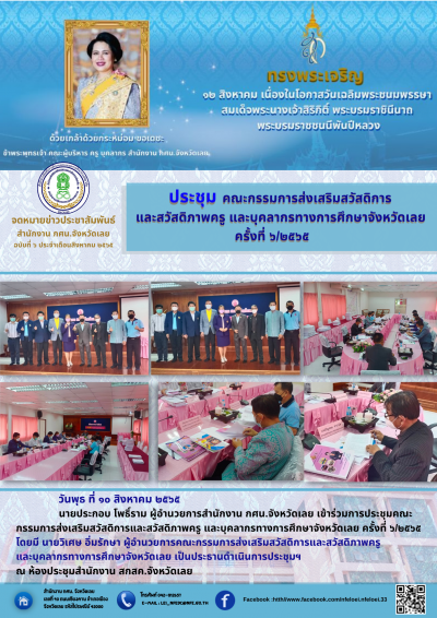 ประชุมคณะกรรมการส่งเสริมสวัสดิการและสวัสดิภาพครู และบุคลากรทางการศึกษาจังหวัดเลย ครั้งที่ ๖/๒๕๖๕