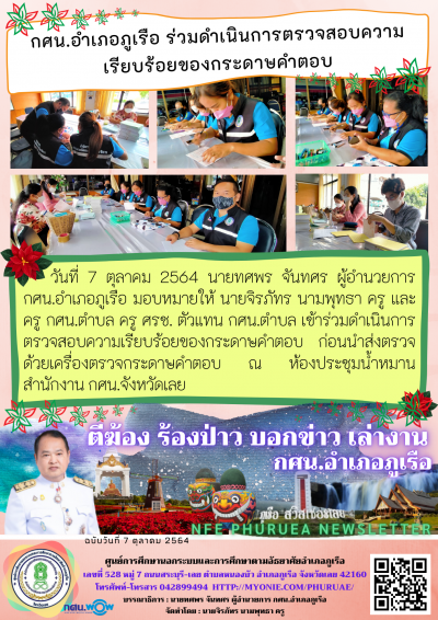 กศน.อำเภอภูเรือ ร่วมดำเนินการตรวจสอบความเรียบร้อยของกระดาษคำตอบ