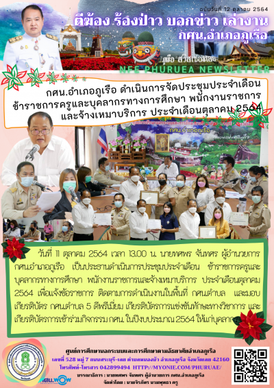 กศน.อำเภอภูเรือ ดำเนินการจัดประชุมประจำเดือน ข้าราชการครูและบุคลากรทางการศึกษา พนักงานราชการและจ้างเหมาบริการ ประจำเดือนตุลาคม 2564