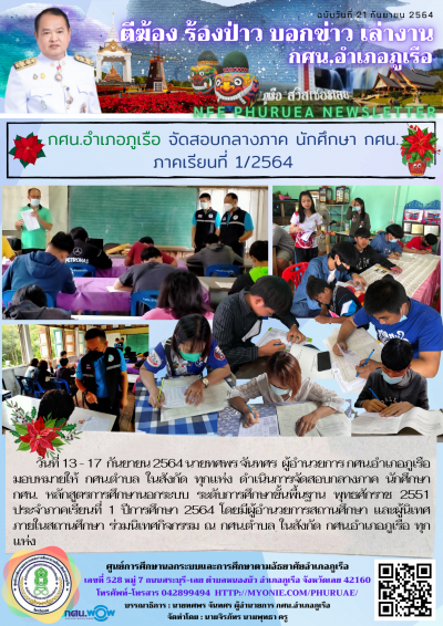กศน.อำเภอภูเรือ จัดสอบกลางภาค นักศึกษา กศน. ภาคเรียนที่ 1/2564