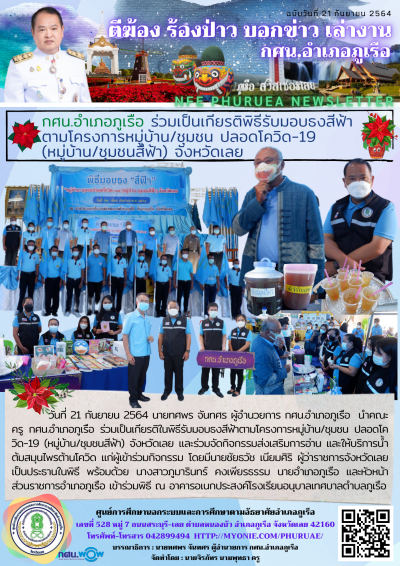 กศน.อำเภอภูเรือ ร่วมเป็นเกียรติพิธีรับมอบธงสีฟ้า ตามโครงการหมู่บ้าน/ชุมชน ปลอดโควิด-19 (หมู่บ้าน/ชุมชนสีฟ้า) จังหวัดเลย