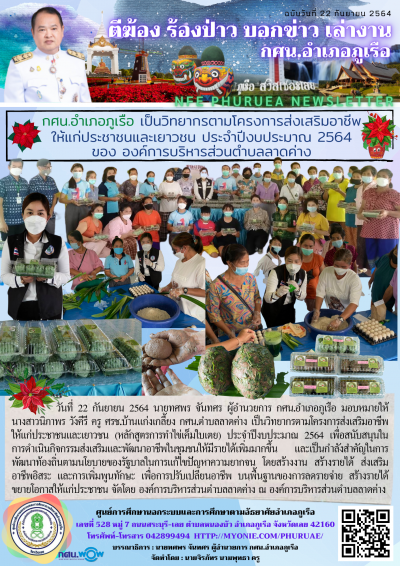 กศน.อำเภอภูเรือ เป็นวิทยากรตามโครงการส่งเสริมอาชีพ ให้แก่ประชาชนและเยาวชน ประจำปีงบประมาณ 2564 ของ องค์การบริหารส่วนตำบลลาดค่าง