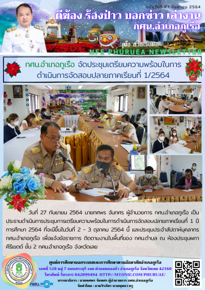 กศน.อำเภอภูเรือ จัดประชุมเตรียมความพร้อมในการดำเนินการจัดสอบปลายภาคเรียนที่ 1/2564