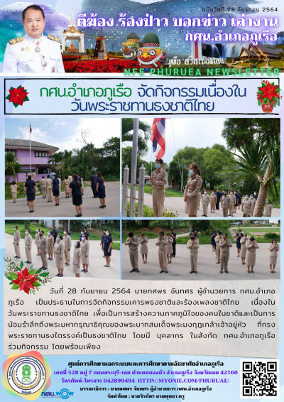 กศน.อำเภอภูเรือ จัดกิจกรรมเนื่องในวันพระราชทานธงชาติไทย
