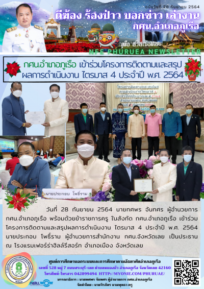 กศน.อำเภอภูเรือ เข้าร่วมโครงการติดตามและสรุปผลการดำเนินงาน ไตรมาส 4 ประจำปี พ.ศ. 2564