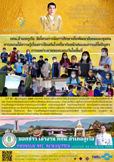 กศน.อำเภอภูเรือ จัดโครงการจัดการศึกษาเพื่อพัฒนาสังคมและชุมชน การอบรมให้ความรู้เรื่องการป้องกันโรคที่มากับหน้าฝนและการแก้ไขปัญหาการแพร่ระบาดของแมลงวันในพื้นที่